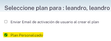 En la ventana emergente verás los planes de pago disponibles para ese contrato. En la parte inferior, marca la casilla “Plan Personalizado”.