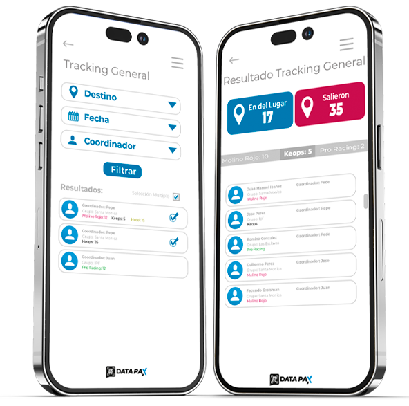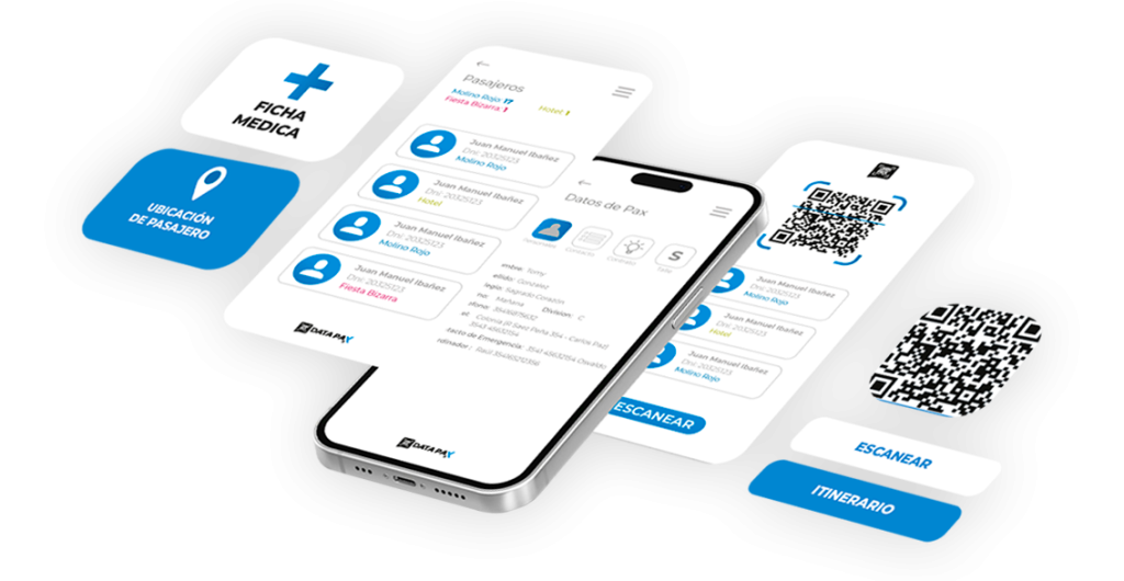 En Datapax cuidamos a cada pasajero. Gracias a nuestra app y a las pulseras QR personales e inviolables, los coordinadores pueden saber en todo momento dónde está cada integrante del grupo, registrando cada ingreso y egreso de actividades, excursiones, alojamientos y transportes.